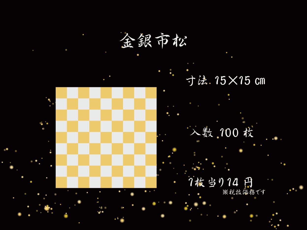 日本の伝統的な市松模様は、正方形の格子が金と銀で模られています。この模様は縁起物としても有名で、お祝いの席にぴったりのデザインです。