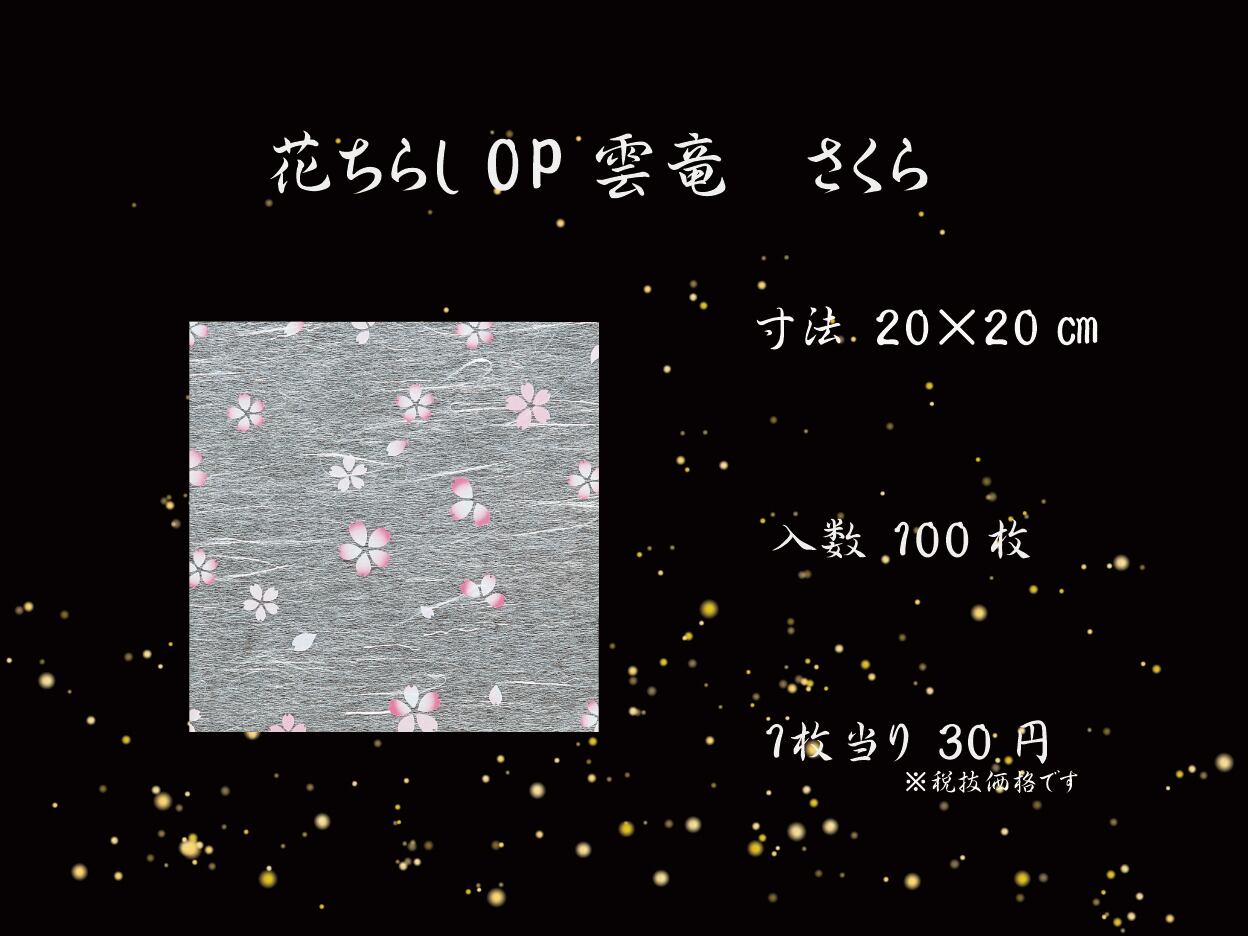 和紙を使用し、季節の花模様が美しく描かれた花ちらしOP雲竜。ラミネート加工が施されております。和の風情漂うデザインは、特別な食事やお茶会をより一層華やかにしてくれること間違いなし。